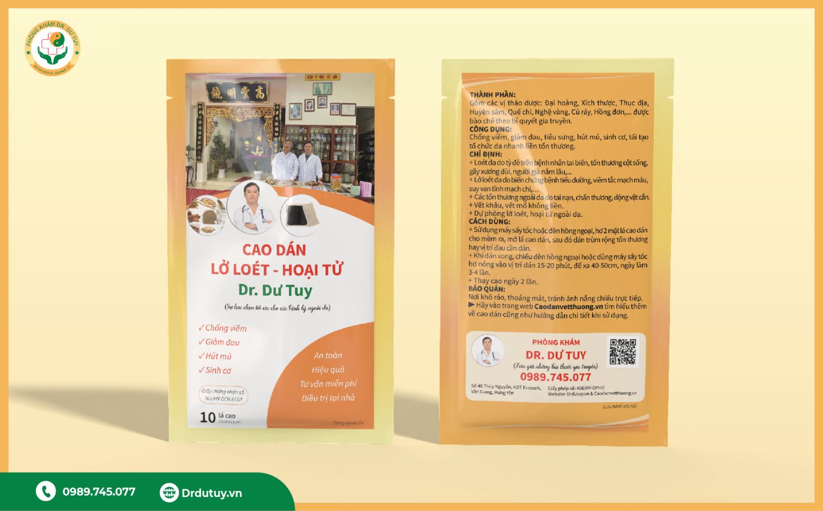 Điều trị loét da do tì đè không chỉ là quá trình làm lành vết thương, mà còn là sự kiên trì trong chăm sóc và sử dụng đúng phương pháp. Với Cao dán Đông y Dr. Dư Tuy, người bệnh có thể điều trị tại nhà hiệu quả, tiết kiệm thời gian và giảm nguy cơ biến chứng. Hãy liên hệ để được bác sĩ tư vấn miễn phí và hướng dẫn cách chăm sóc chuẩn y khoa ngay từ hôm nay